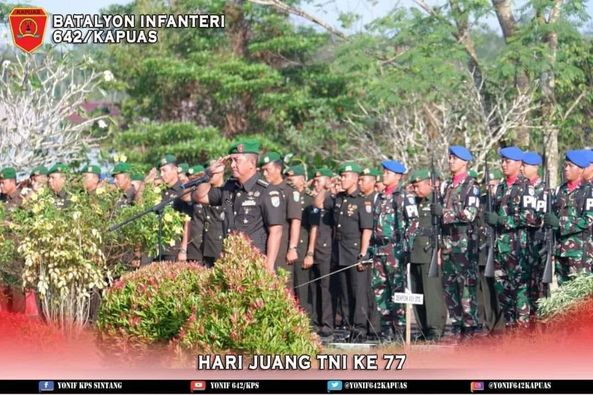 Sintang – Danyonif 642/Kps Letkol Inf Putra Andika Trihatmoko beserta Prajurit dan Persit Yonif 642/Kps turut hadir dalam kegiatan Ziarah Rombongan dalam rangka memperingati Hari Juang TNI AD ke- 77 yang bertempat di Taman Makan Pahlawan (TMP) Syuhada Pertiwi Kab. Sintang. Acara Ziarah Rombongan dipimpin langsung oleh Kasrem 121/Abw Kolonel Czi Rudy Wahjudiono,S.E.,M.M. Senin, (12/12/22).