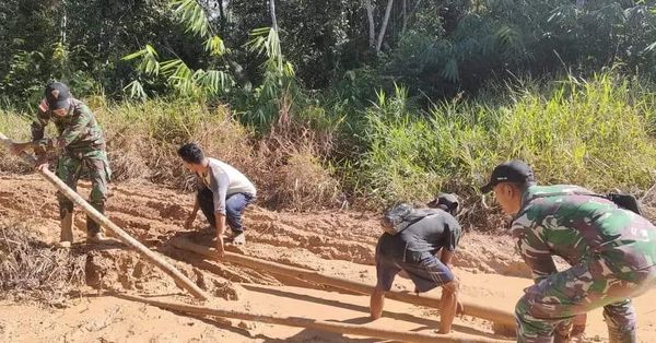 “Jalan merupakan sarana infrastruktur yang sangat penting dan vital di suatu daerah manapun dan merupakan faktor utama dalam mendukung aktivitas baik personel satgas maupun masyarakat dalam mobilitas. Oleh karena itu personel Pos Sei Beruang yang dipimpin oleh Sertu Dwi beserta 2 personel ikut membantu memperbaiki jalan yang menghubungkan 3 dusun tersebut.” Ujar Dansatgas.