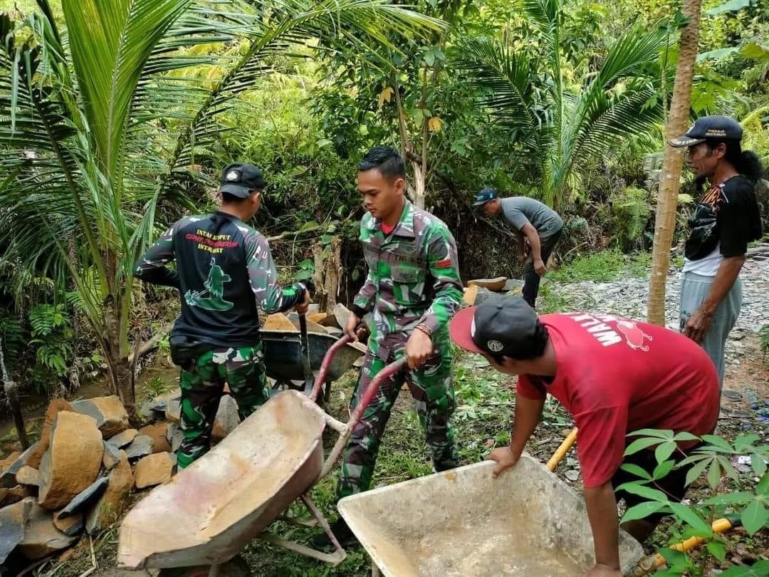 Dansatgas mengatakan, disamping menjalankan tugas pokok menjaga kedaulatan NKRI, Mengamankan Wilayah Perbatasan, Menjaga Pilar Batas Negara Serta Mencegah Masuknya Barang-Barang Illegal Narkotika, Satgas Pamtas Yonif 645/Gty juga melaksanakan kegiatan-kegiatan Teritorial atau Binter kepada warga masyarakat perbatasan, kali ini Pos Kout dipimpin oleh Pabintal Satgas Yonif 645/Gty Letda Inf Andi Muh Pagelipu beserta 4 (empat) orang anggota bersama-sama dan bergotong royong dengan warga masyarakat perbatasan membantu pemindahan atau pengangkutan material batu dan pasir untuk meneruskan dalam pembuatan tempat Wudhu dan WC Masjid Shirotul Jannah. Ujar Dansatgas
