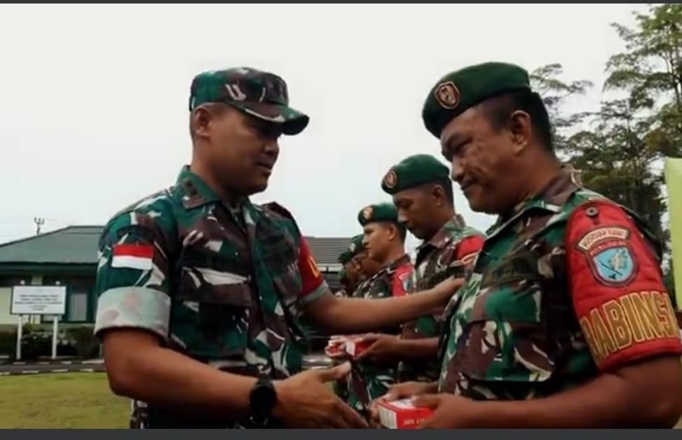 Putussibau – Bertempat di halaman Makodim 1206/Putussibau, Letkol Inf Sri Widodo selaku Dandim 1206/Putussibau membagikan suplemen kesehatan berupa Vitamin HB-Vit 500 kepada Babinsa Kodim 1206/Putussibau secara simbolis, Sabtu 24/12/22.