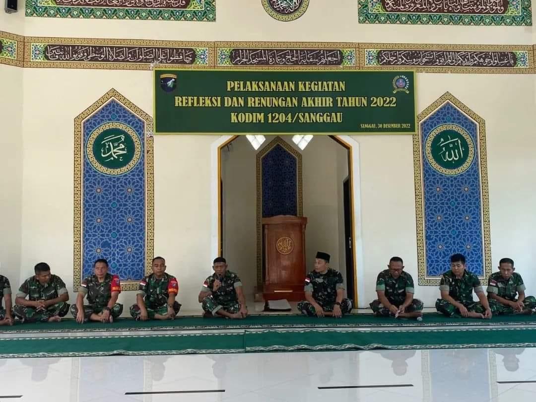 Sanggau – Kodim 1204 / Snggau menggelar Refleksi dan Renungan Akhir Tahun 2022 serta Doa bersama dalam rangka menyongsong Tahun Baru 2023. Bagi yang beragama Islam dilaksanakan di Masjid Nuurul Kodim, Jalan Padi No. 1 Kel. Tanjung Kapuas Kec. Kapuas Kab.Sanggau.Doa bersama yang dipimpin oleh Sertu Jumadi.jumat (30/12/2022)