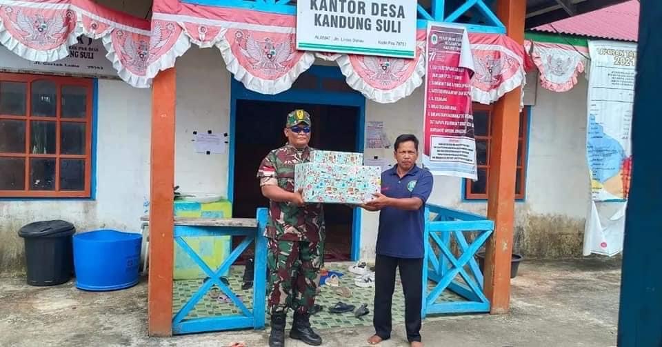Jongkong , Danramil 1206-09/Jongkong Pelda Didik Riyono Memberikan bantuan kepada 17 anak balita terdampak Stunting diaula desa Kandung Suli kecamatan Jongkong, kabupaten Kapuas Hulu,02/1/2023.