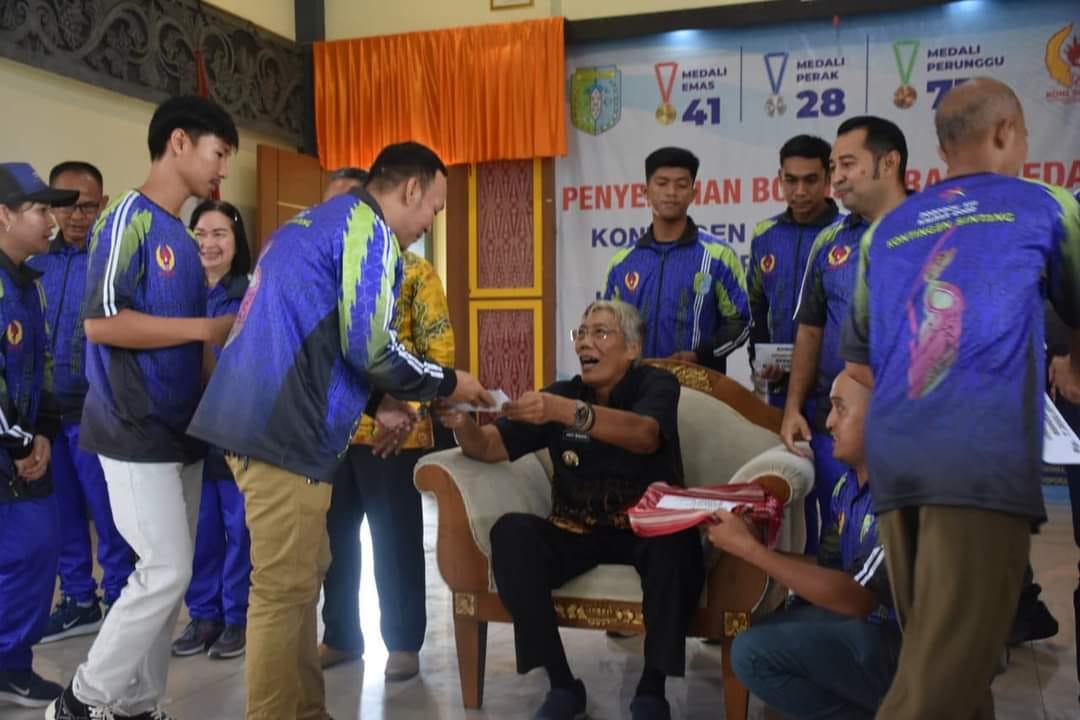 Menurutnya, ini merupakan bentuk kepedulian Pemda Sintang atas kerja keras para atlet yang telah mengharumkan nama Kabupaten Sintang.