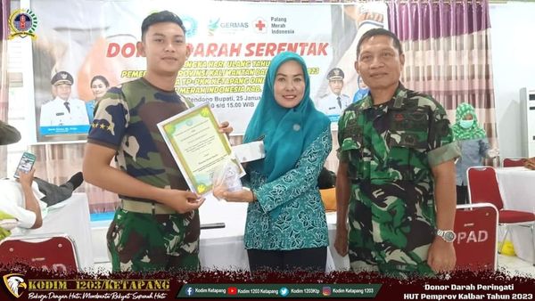 Kita ketahui bersama bahwa kegiatan bakti sosial donor darah merupakan wujud kepedulian untuk mendukung program kemanusiaan, Untuk itu Kodim 1203/Ktp selalu mendukung kegiatan donor darah oleh semua pihak,”katanya.