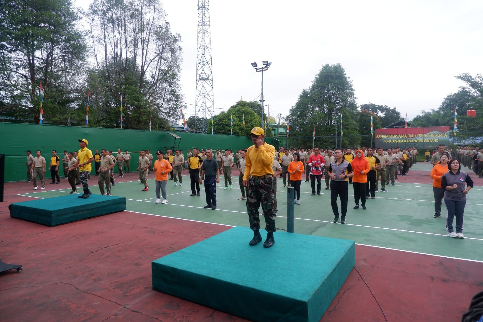 Sintang, Untuk lebih mengeratkan sinergi antar instansi pemerintah, unsur TNI-Polri dan Forkopimda di Kabupaten Sintang melaksanakan olah raga senam SKJ 88 bersama di Lapangan Tenis Makorem 121/Abw, Jl. Pangeran Kuning, No.1, Tanjungpuri, Sintang, Kalimantan Barat, Jum’at (3/02/2023).