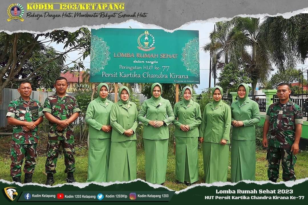 Dalam pelaksanaan penilaian Ketua Persit KCK Cabang XLVII Kodim 1203 didampingi Pasi Pers Kodim 1203/ktp Letda Inf Paulus, Bati Pers Kodim 1203/ktp, Serma Heri Nugroho, serta Ibu-Ibu Pengurus Seksi terkait, “Semoga dengan adanya Lomba Kebersihan Rumah Sehat ini, dapat memotivasi warga di lingkungan Perumahan Dinas Kodim 1203/Ktp untuk selalu menjaga dan peduli dengan kebersihan dan kesehatan lingkungan,”tutupnya.