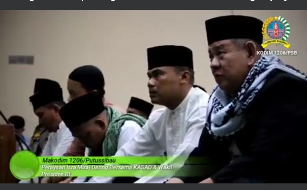 Putussibau, Dalam rangka memperingati Isra’ Mi’raj Nabi Muhammad SAW tahun 1444H/2023 M, Dandim 1206/Psb Letkol Inf Sri Widodo bersama jajaran mengikuti kegiatan Istighosah Kubra secara virtual yang dilaksanakan di aula Makodim 1206/Psb, Minggu, 19/2/2023.