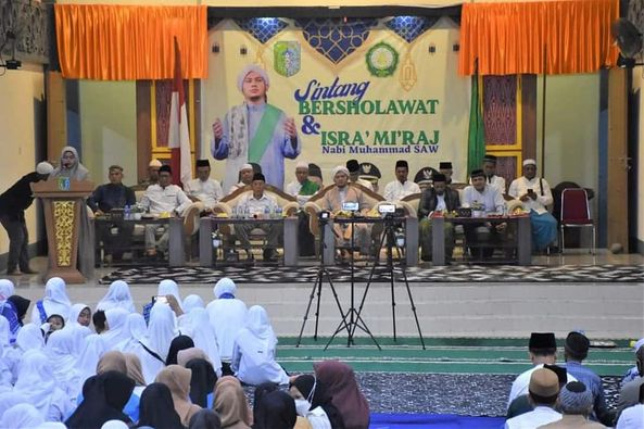 Tabligh Akbar Sintang Bershalawat yang dilaksanakan dalam rangka Isra’ Mi’raj Nabi Muhammad SAW ini menghadirkan Al Habib Achmad Nizar Fahrin Bin Qasim Bin Yahya yang merupakan Pimpinan Pondok Pesantren Darunnaim Pontianak.