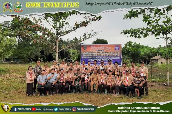 Ketapang – Kapten Inf Budi Santoso, Danramil 1203-06/Manismata diwakili Sertu Masdianto hadiri Pembukaan Kursus Pembina Pramuka Tingkat Dasar (KMD) di SMK Taruna, Desa Lembah Mukti, Kec. Manis Mata, Kab. Ketapang. Selasa (21/2/23).