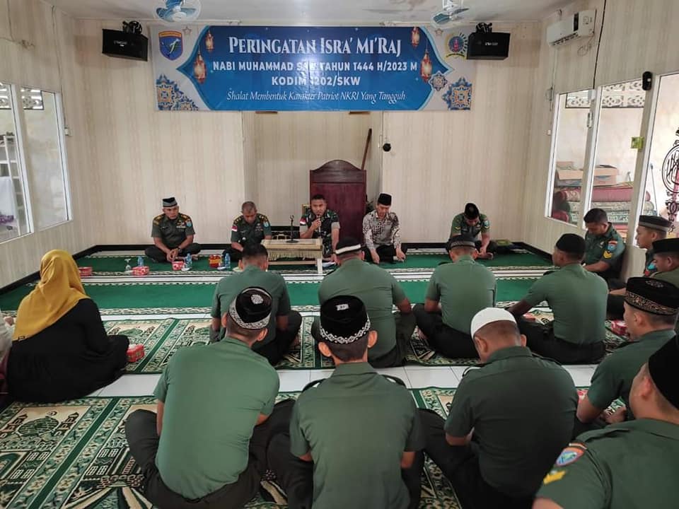 Singkawang – Keluarga besar Kodim 1202/Skw menggelar peringatan Isra’ Mi’raj Nabi Muhammad SAW 1444 H/2023 Masehi,di Masjid Al Ikhlas jln. Ali Anyang, Kel. Pasiran, Kec, Singkawang Barat.