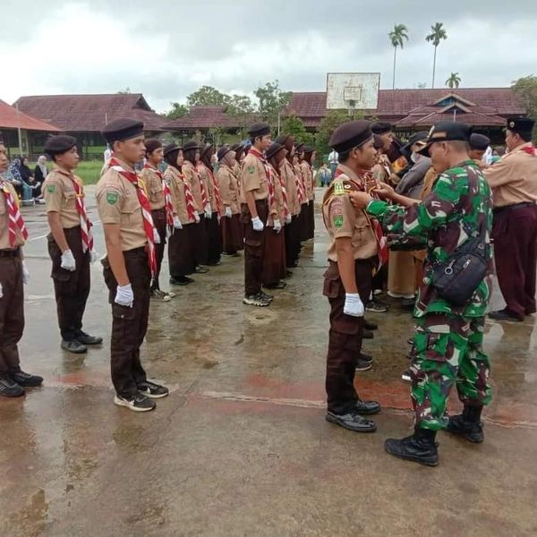 Sambas – Babinsa Desa Sulung Koramil 02/Sejangkung Sertu Mizwal menghadiri kegiatan pengambilan Syarat Kecakapan Umum (SKU) Pramuka Penegak Bantara dalam rangka meningkatkan Sumber Daya Umum, Mutu dan Pengembangan Diri Anggota Pramuka Gudep Sisingamangaraja dan Cut Mutia yang bertempat di Halaman SMA Negeri 1 Sejangkung Desa Parit Raja Kec. Sejangkung Kab. Sambas, Senin (27-02-23).