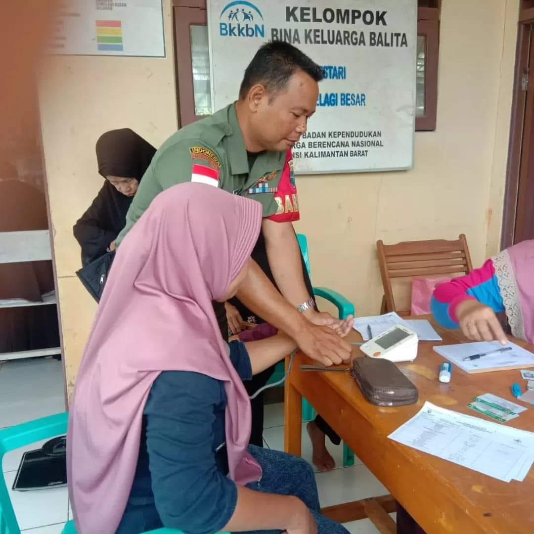 Kepedulian yang tinggi terhadap kesehatan Warga masyarakat terutama Lansia (lanjut usia), Babinsa Semelagi Besar Serda Supandi melaksanakan pendampingan Posyandu Lansia yang diselenggarakan oleh Puskesmas Selakau.