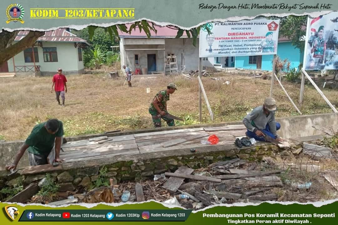 Menurut keterangan Serda Wahid Usman, Bangunan Pos Koramil yang berukuran 9 M × 15 M tersebut dilaksanakan secara bertahap, dan dikerjakan dengan swadaya Babinsa dan Masyarakat setempat berlokasi di Desa Seponti Jaya, Kec. Seponti, Kab. Kayong Utara. Sabtu (4/3/2023)