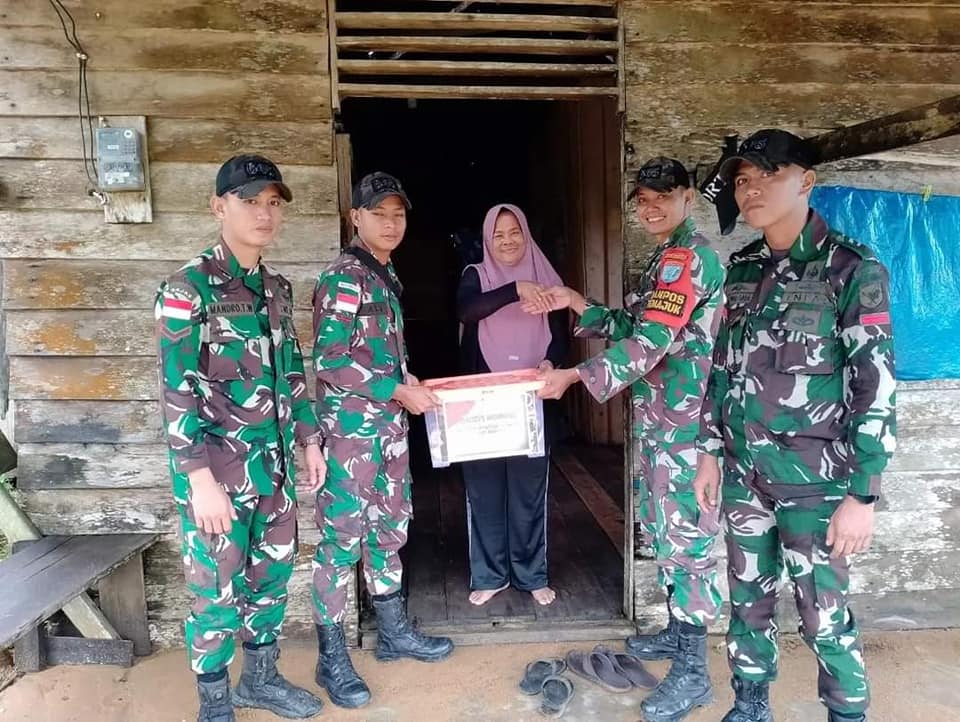 Sambas, Kalbar – Dalam Menyambut Bulan Suci Ramadhan Satuan Tugas Pengamanan Perbatasan (Satgas Pamtas) RI-Malaysia Yonif 645/Gardatama Yudha peduli terhadap warga masyarakat perbatasan, diwujudkannya dengan Bhakti Sosial (Baksos) berbagi berupa paket sembako dengan sasaran warga perbatasan yang kurang mampu, bertempat di pos binaan Sungai Tengah dan Camar Bulan Satgas Pamtas Yonif 645/Gty, di Dusun Temajuk, Desa Temajuk, Kabupaten Sambas.