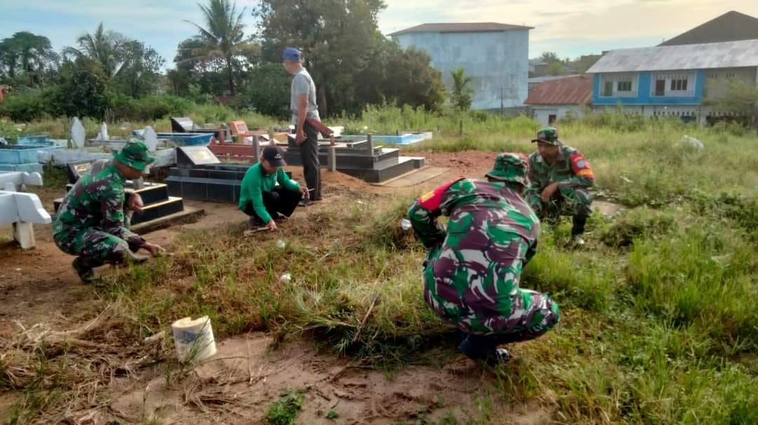 Melawi – Babinsa Koramil 1205-01/Nanga Pinoh melaksanakan Kerja Bakti pembersihan Tempat Pemakaman Umum (TPU) di Dusun Ronda Permai, Desa Sidomulyo, Kecamatan Nanga Pinoh, Selasa (07/03/2023).