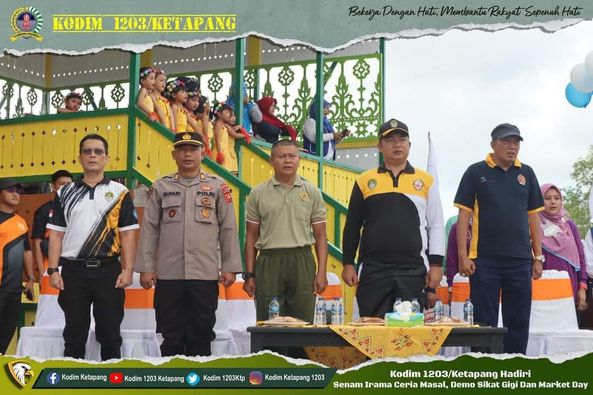 Ketapang- Prajurit dan Persit KCK Cabang XLVII Kodim 1203/Ktp menghadiri kegiatan Senam Irama Ceria Masal, Demo Sikat Gigi Dan Market Day, di Stadion Tentemak Ketapang, Selasa (7/3/2023).