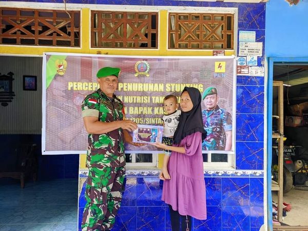 Sintang – Sebagai wujud implementasi dalam mendukung program penurunan stunting, Kodim 1205/Sintang melalui Koramil 1205-07/Sintang salurkan paket nutrisi tambahan dari KASAD untuk percepatan penurunan stunting, Senin (13/03/2023).