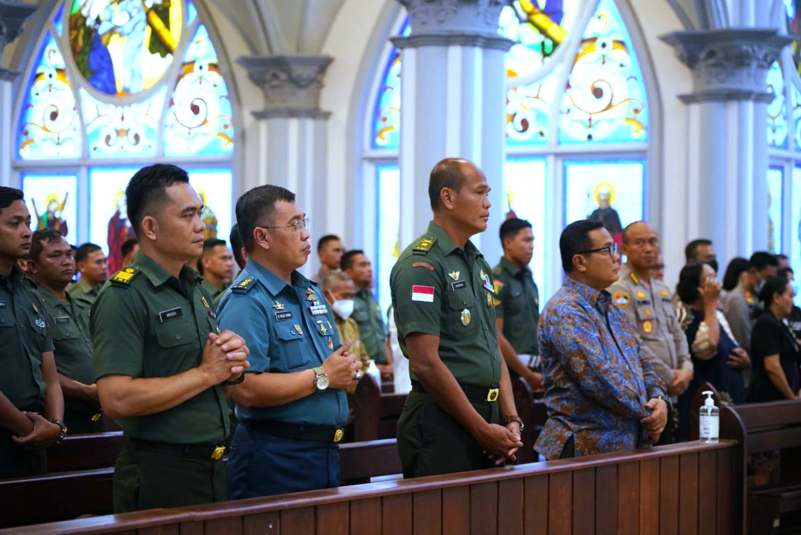 Sintang, Prajurit Korem 121/Abw, Kodim 1205/Stg dan Balak Aju Korem 121/Abw yang beragama Katolik mengikuti Misa bersama Umat Katolik TNI dan Polri yang di gelar di Gereja Katedral Kristus Raja Sintang, Jl. Pahlawan No.8, Tj. Puri, Kec. Sintang, Kabupaten Sintang, Kalimantan Barat, Kamis (16/3/2023).