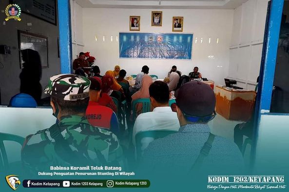 Kayong Utara- Dalam rangka mendukung program pemerintah tentang Percepatan Penurunan Stunting di wilayah, Serda Wahid Usman dan Kopda Eko Oktavia Darma, Babinsa Koramil 1203-15/Teluk Batang menghadiri Kegiatan Rembuk Stunting.