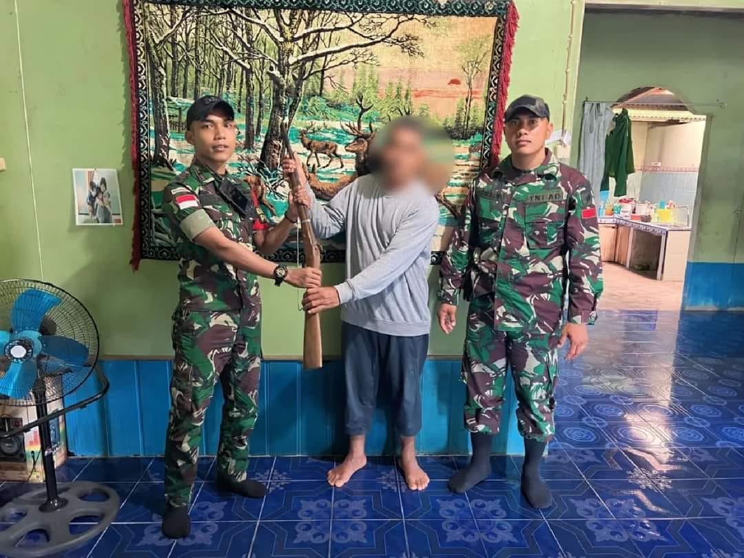Dikatakannya, “Melalui komunikasi yang baik dan kegiatan territorial dengan warga perbatasan, sehingga warga masyarakat perbatasan menjadi semakin dekat dan percaya terhadap prajurit TNI yang khususnya Satgas Pamtas Yonif 645/Gty sehingga dengan sukarela menyerahkan senjata api rakitan itu tanpa ada paksaan dari prajurit Satgas Pamtas, ini menjadi bukti dari kedekatan anggota Satgas Pamtas dengan masyarakat perbatasan yang merupakan hasil dari kegiatan teritorial Komunikasi Sosial (Komsos) yang setiap hari gencar dilakukan anggota Satgas Pamtas Yonif 645/GTY”. Terangnya