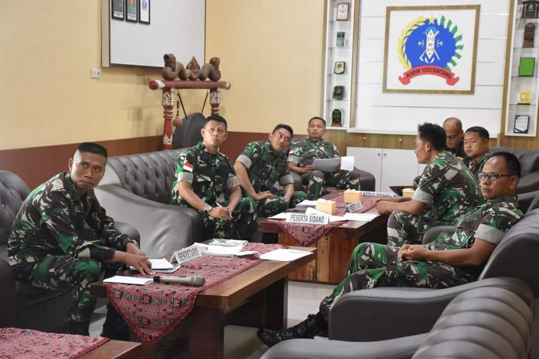 Sintang – Komandan Kodim 1205/Sintang, Letkol Inf Kukuh Suharwiyono memimpin langsung sidang jabatan dan dilanjutkan sidang Usul Kenaikan Pangkat (UKP) periode 1 Oktober 2023 bagi Tamtama dan Bintara di jajaran Kodim 1205/Sintang yang dilaksanakan di ruang transit Makodim Sintang, Senin (27/03/2023).