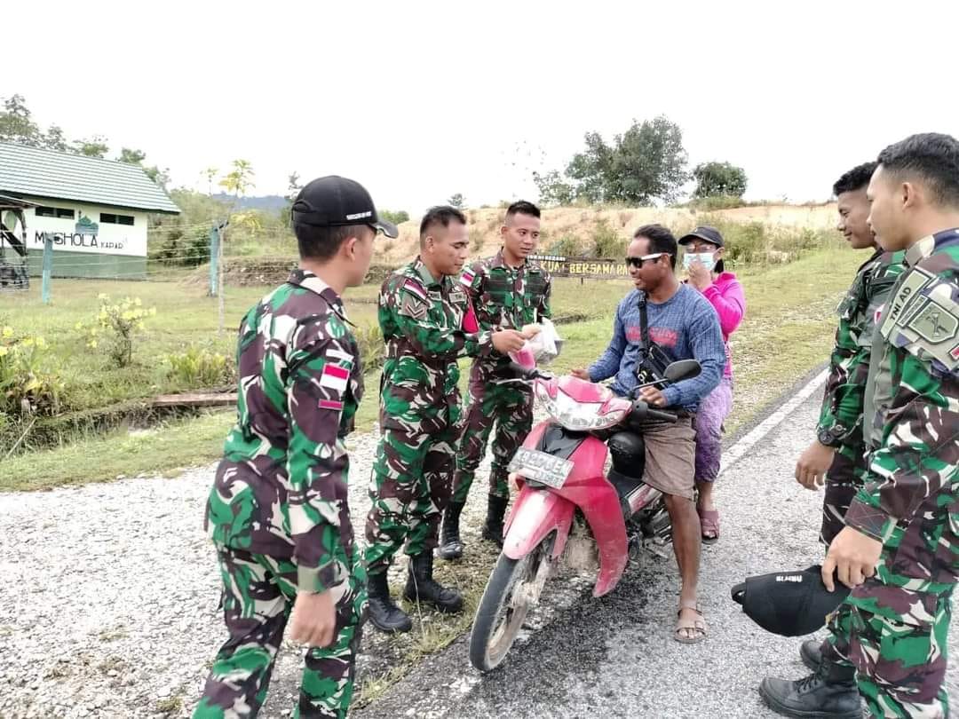 KAPUAS HULU – Personel Satgas Pamtas RI-Malaysia Yonarmed 19/105 Trk Bogani Pos Kapar membagikan seratusan paket takjil bagi pengguna Jalan Lintas Kalimantan Poros Utara di Desa Sungai Senunuk, Kecamatan Batang Lupar, Kabupaten Kapuas Hulu dalam rangka saling berbagi di bulan penuh berkah.