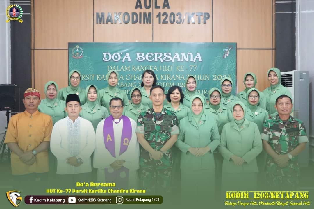 Ketapang – Menjelang HUT Persit Ke-77, Persit KCK Cabang XLVII Kodim 1203 menggelar Do’a Bersama Lintas Agama yang berlangsung di Aula Makodim 1203/ Ketapang. Rabu (29/3/2023).