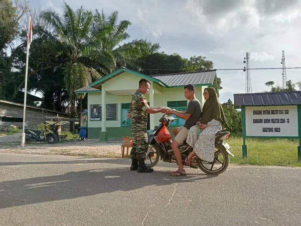 Sanggau. – Koramil Koramil 1204-13/Belitang hulu melaksanakan membagikan takjil jelang buka puasa kepada warga dan pengguna jalan yang melintas di depan Depan Koramil 13/Belitang hulu Jln. Dwi kora desa. Balai sepuak Kec.Belitang hulu Kab.sekadau. Jum’at (07/04/2023)