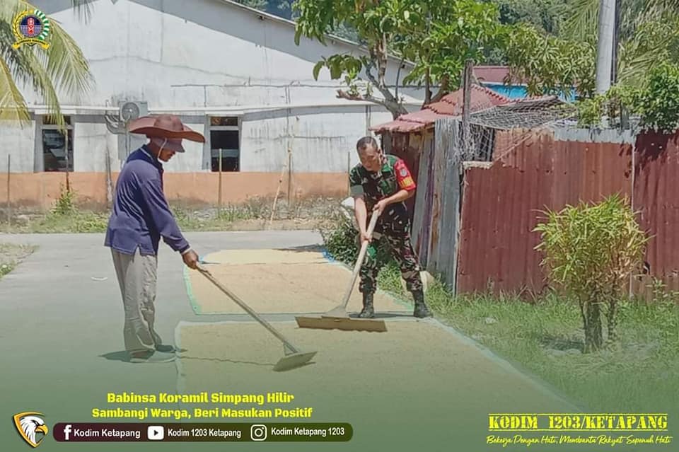 Dalam interaksinya Babinsa Padu Banjar ini Turut membantu Pak Adim menjemur padi sembari memberikan masukan-masukan yang positif dan motivasi guna meningkatkan perekonomian keluarga.