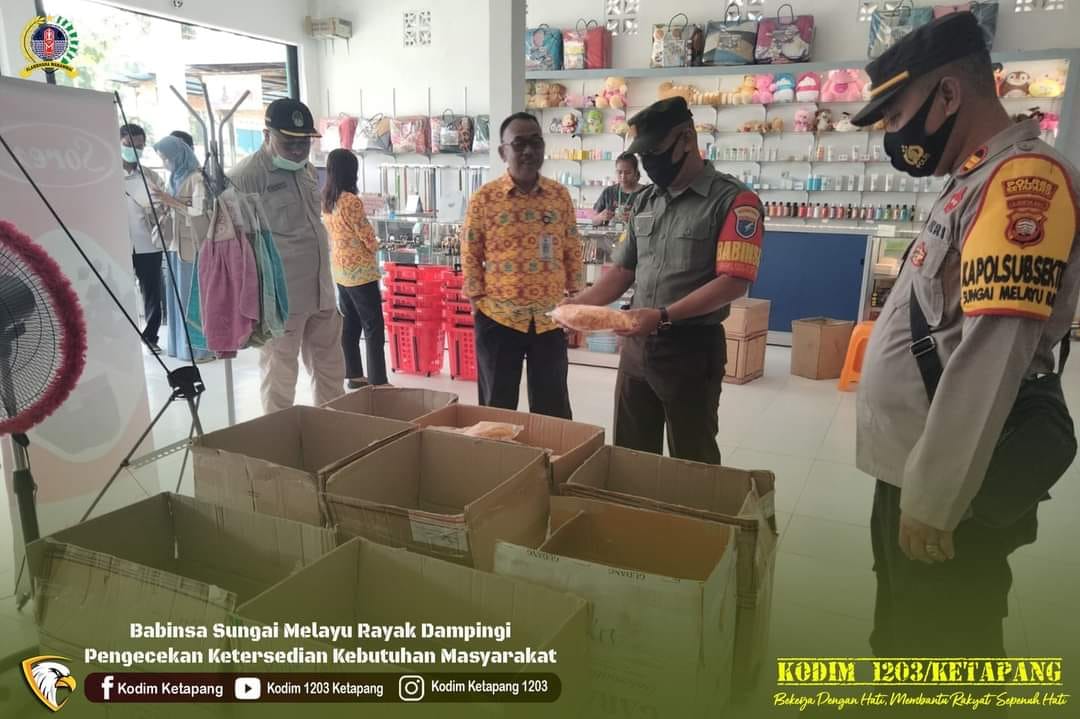Ketapang – Babinsa Koramil 1203-09/Tumbang Titi, Serka Zulkarni melaksanakan pendampingan pengecekan ketersediaan stok sembako dan kebutuhan lainnya di sejumlah pertokoan yang ada di seputaran Kecamatan Sungai Melayu Rayak, Ketapang. Rabu (19/4/2023)