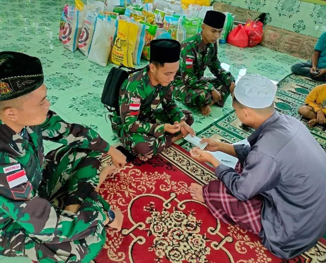 “Kami membayar zakat fitrah yang diwakilkan oleh Sertu Yoga beserta 2 anggota yang langsung kami serahkan kepada Ustadz Sholihin sebagai salah satu pengurus di Mesjid Nurul Hudud.” Tambah Dansatgas.