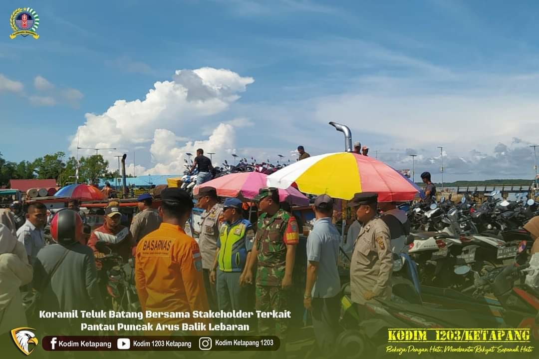 Kayong Utara – Babinsa Koramil 1203-15/Teluk Batang bersama instansi terkait terus melaksanakan pemantauan puncak arus balik Hari Raya Idul Fitri 1444 H/2023 di Pelabuhan Teluk Batang, Minggu (30/4/2023).