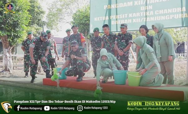 Penebaran benih ikan tersebut berlangsung di kolam milik Persit KCK Cabang XLVII Kodim 1203, dilakukan secara simbolis oleh Pangdam XII/Tpr dan Ketua Persit Kartika Chandra Kirana Daerah XII/Tpr.