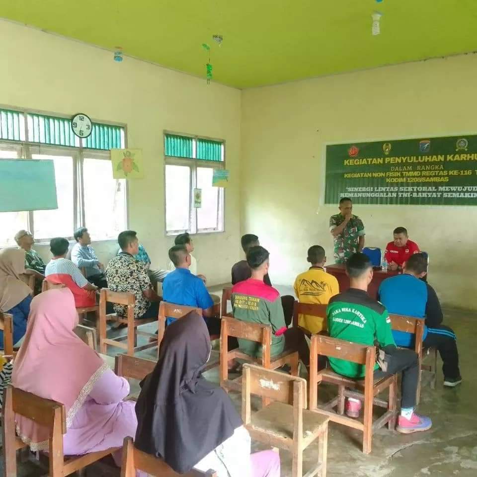 Penyuluhan dilaksanakan terselenggara atas kerjasama Satgas TMMD dan Dinas Lingkungan Hidup Kabupaten Sambas, dan menghadirkan narasumber dari Manggala Agni Kab. Sambas.