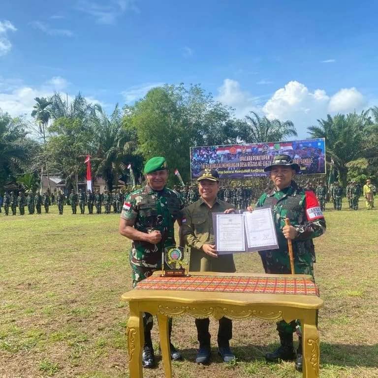 Usai upacara, pangdam XII/TPR didampingi Dandim 1208/Sambas dan Forkopimda Sambas, memberikan bantuan baksos kepada masyarakat setempat dilanjutkan meninjau sasaran fisik TMMD dan pengobatan massal.