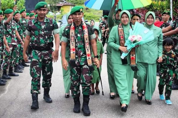 Sanggau, Komandan Batalyon Infanteri 642/Kapuas Mayor inf Dwiyanto kusumo, M. A. P. dan Ketua Persit Kartika Chandra Kirana Cabang Llll Yonif 642 Koorcab Rem 121 PD Xll/Tanjungpura Ny. Rezky Dwiyanto Kusumo melaksanakan kunjungan kerja di Kompi Senapan B Yonif 642/Kps. Jumat (09/6/23)