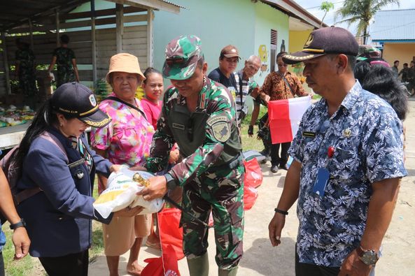 Putussibau, Dandim 1206/Psb Letkol Inf Sri Widodo mendampingi Danrem 121/Abw Brigjen TNI Pribadi Jatmiko S.Hub.Int,M.A berikan bantuan paket sembako dan bantuan vitamin kepada warga di desa Puring Kencana yang termasuk wilayah perbatasan negara Indonesia Malaysia, Kamis,22/6/2023