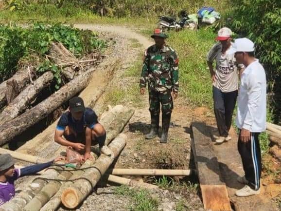 “Kami berharap dengan jembatan ini dibenahi dapat membantu aktifitas masyarakat dsn. Mangkau” ujar Danpos Mangkau.