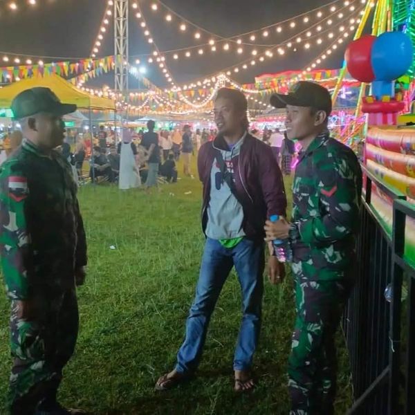 Sambas – Anggota Koramil 1208-03/Tebas Ikut dalam pengamanan Pekan Raya yang di gelar di Lapangan Sepak bola 28 Oktober Desa Mensere, Dusun Lestari, Desa Mensere, Kec. Tebas, Kab. Sambas, Minggu Malam (02/7).