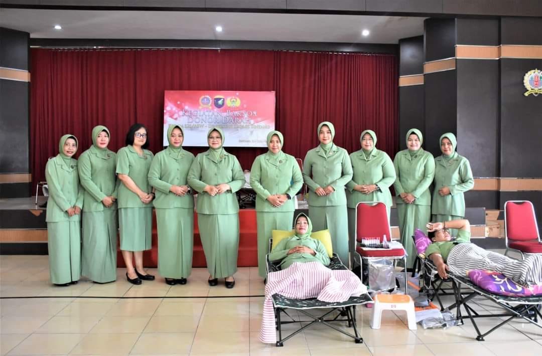 Sintang – Dandim 1205/Sintang Letkol Inf Kukuh Suharwiyono, bersama Ketua Persit KCK Cabang XLIX Kodim 1205, Ny. Nia Kukuh beserta anggotanya mengikuti kegiatan donor darah dalam rangka menyambut HUT Kodam XII/Tanjungpura yang berlangsung di Aula Makorem 121/Abw, Selasa(11/07/2022).