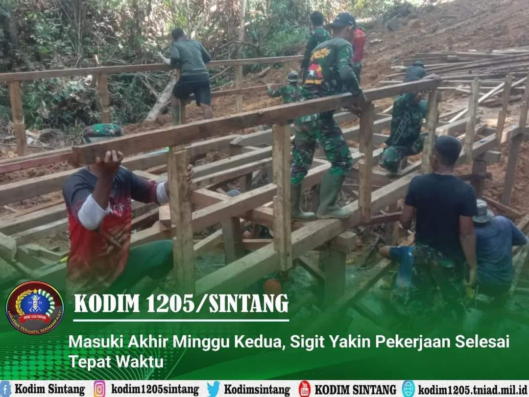 Sertu Sigit, kepala kelompok tukang dalam satgas TMMD Kodim Sintang mengatakan, saat ini ia dan anggota lainnya terus berupaya menyelesaikan pekerjaan, walaupun kadang terkendala cuaca hujan. Ia memastikan untuk pekerjaan dapat selesai tepat waktu bila seluruh material sudah di posisi pengerjaan.