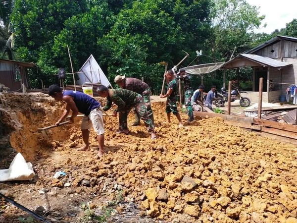 Sanggau.- Babinsa Koramil 1204-21/Entikong yang dipimpin Serka Niman Batuud Koramil 21/Entikong, beserta 4 orang anggota dan masyarakat melaksanakan kegiatan Karya bakti rencana pembangunan RTLH di Dsn. Peripin Desa Entikong Kec. Entikong. Rabu,(26/07/2023)