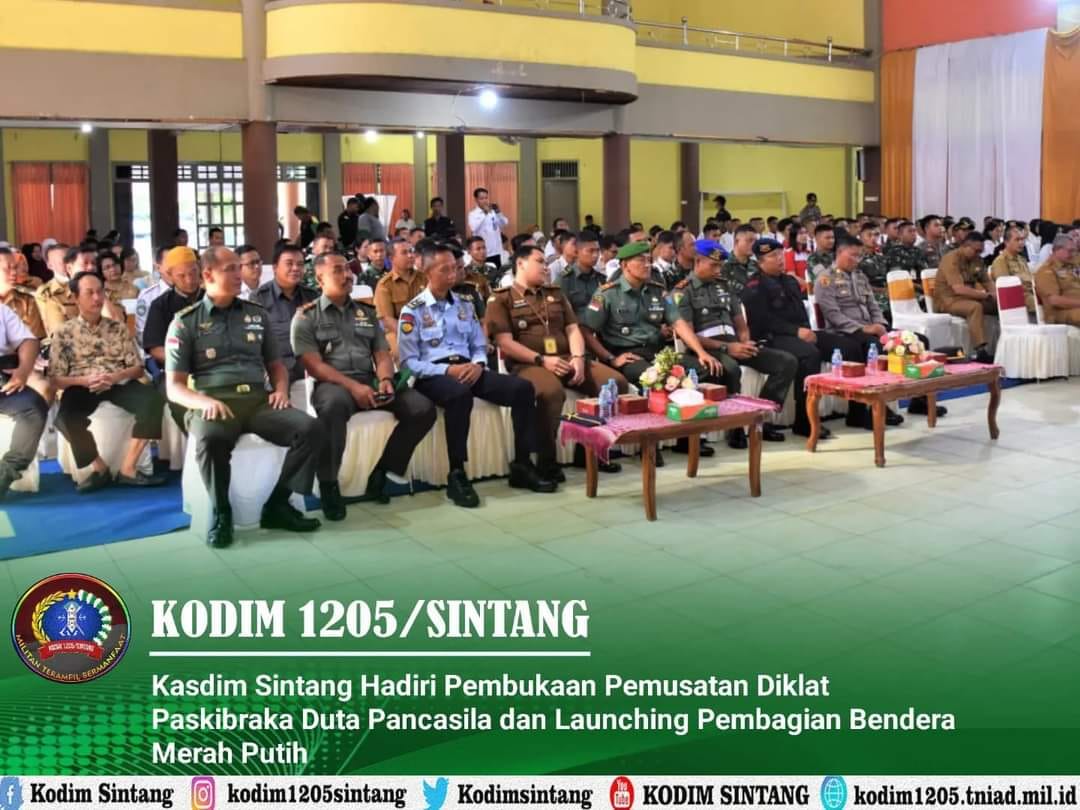 Sintang – Kepala Staf Kodim 1205/Sintang, Mayor Inf Andreas menghadiri Kegiatan Pemusatan Diklat Paskibraka Duta Pancasila dan Launching Pembagian Bendera Merah Putih Kabupaten Sintang dalam Rangka HUT Kemerdekaan Republik Indonesia ke-78 Tahun 2023 yang dilaksanakan di Gedung Pancasila Sintang, Senin (31/07/2023).