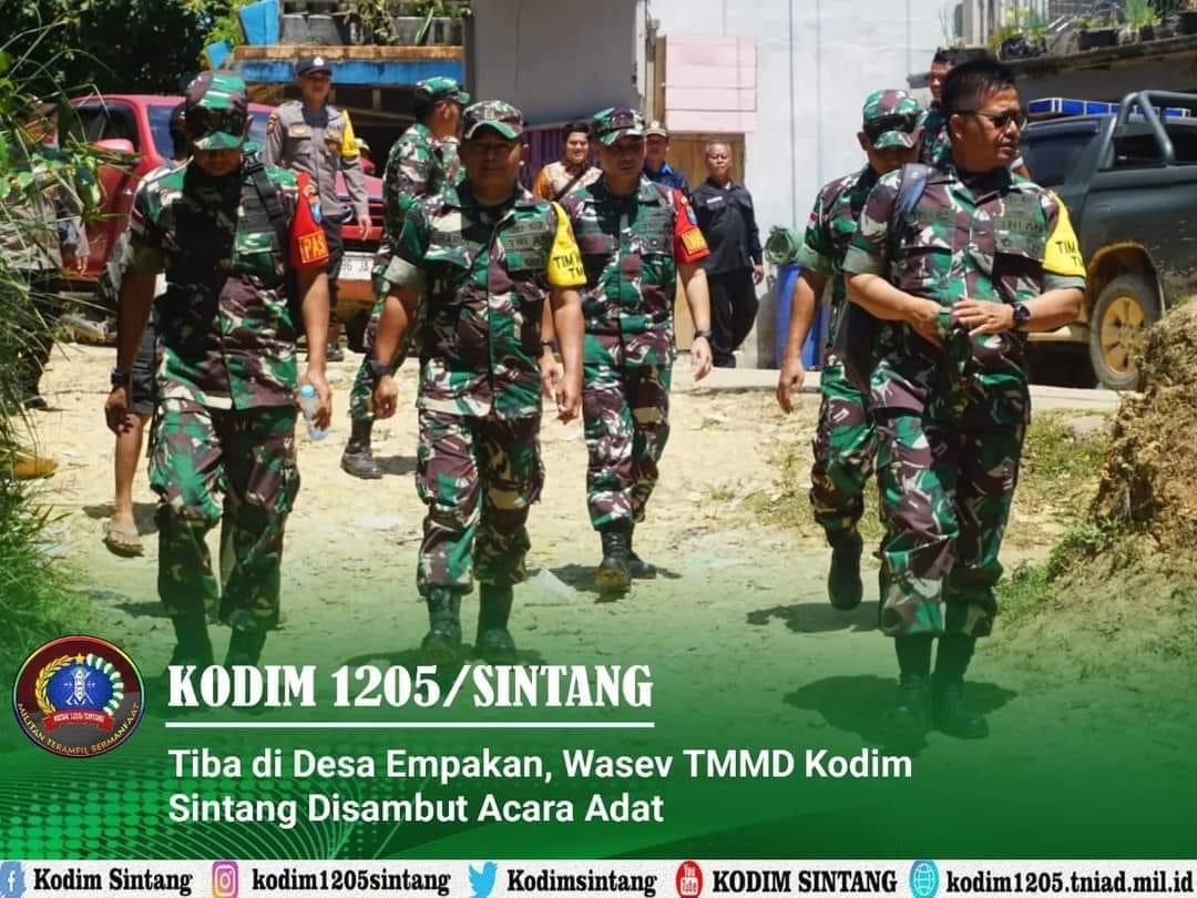 Sintang – Kunjungan Tim Pengawasan dan Evaluasi (Wasev) TMMD reguler ke-117 Kodim 1205/Sintang ke desa empakan yang menjadi lokasi sasaran pelaksanaan TMMD disambut dengan acara adat oleh warga setempat.