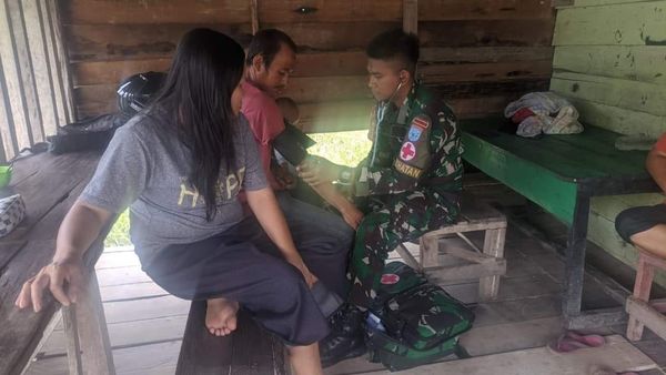 Kamis, 10 Agustus 2023 Pos KM 28 Satgas Pamtas RI-MLY Yonarmed 16/Tumbak kaputing yang dipimpin oleh Sertu Recky yang menjabat sebagai DANPOS KM 28 DPP Takes Pratu Achmad Muzammil beserta 1 orang anggota melaksanakan kegiatan pelayanan kesehatan keliling Di dsn Aping ds Sebunga kec. Sajingan Besar.
