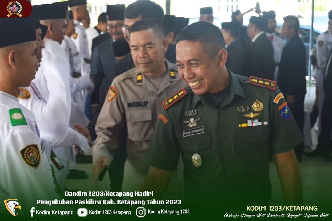 Ketapang – Dandim 1203/Ktp, Letkol Czi Agus Ikwanto, S.E, M. Han menghadiri Pengukuhan Pasukan Pengibar Bendera (Paskibra) Kab. Ketapang yang akan bertugas pada Upacara Peringatan Detik-Detik Proklamasi Kemerdekaan Indonesia Ke-78 Tahun 2023.