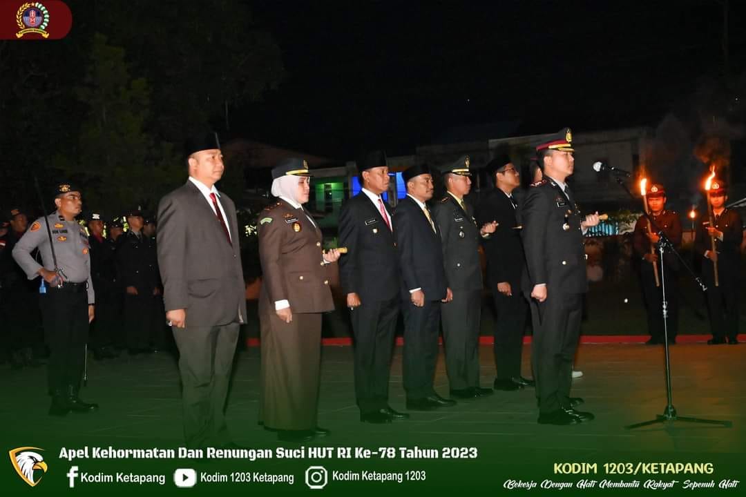 Ketapang – Malam ini, tepat pukul 00.00 WIB berlangsung Apel Kehormatan Dan Renungan Suci di Taman Makam Pahlawan (TMP) Tanjungpura Jl. Brigjen Katamso, Kelurahan Sukaharja, Kecamatan Delta Pawan, Kabupaten Ketapang, Kamis (17/8/2023).