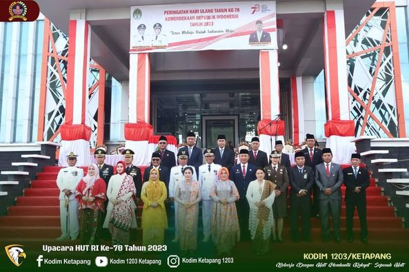 Ketapang – Dandim 1203/Ktp, Letkol Czi Agus Ikwanto, S.E, M. Han bersama Ny. Ayu Agus Ikwanto, Ketua Persit KCK Cabang XLVII mengikuti Upacara HUT Ke-78 Kemerdekaan Republik Indonesia Tahun 2023, Di Halaman Kantor Bupati Ketapang. Kamis (17/8/2023)