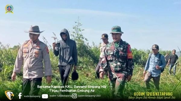 Kali ini Pj. Danramil 1203-11/Sph, Peltu Nanang Kuswara bersama Kapolres KKU, AKBP. Achmad Darmianto, S.H.S.I.K meninjau langsung pembuatan embung air di lokasi rawan karhutla Kecamatan Simpang Hilir – Kayong Utara, Jum’at (18/8/2023)