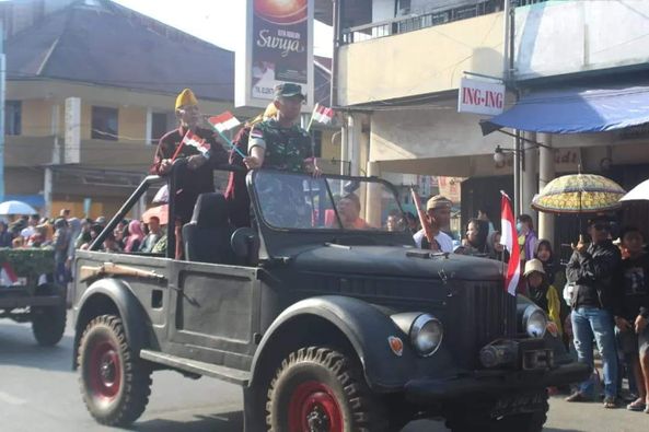 Singkawang – Komandan Kodim 1202/Skw Letnan Kolonel Arm Ferdy Pongsamma Radja, S.H. beserta Forkompinda menghadiri pawai Karnaval dalam rangka memeriahkan Hari Ulang Tahun ke 78 Republik Indonesia di jalan R.A Kartini ,Kel sekip lama kec singkawang tengah ,